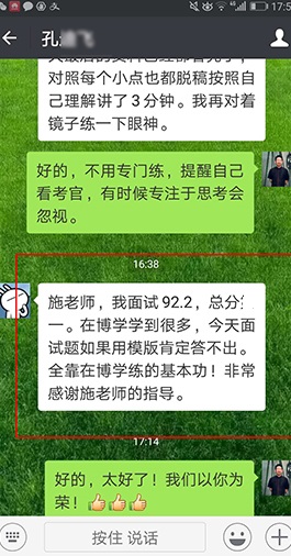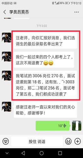 面試上岸有保障(指最終報考單位錄?。?。 歷年來,事業(yè)單位面試培訓班上岸率有保障,均有據(jù)可查。博學面試課程體系無論是課程的深度、廣度、實戰(zhàn)性還是歷屆學員口碑和美譽度都遠高于其他同類輔導(dǎo)機構(gòu)。面試狀元、最后一名反超成功的比比皆是。 |