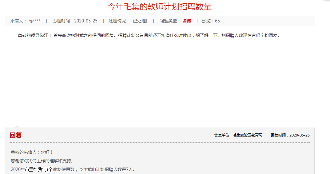 尊敬的來信人:您好!感謝您對我們工作的理解和支持。2020年市里給我們7個(gè)編制使用數(shù),今年我們計(jì)劃招聘人數(shù)是7人。