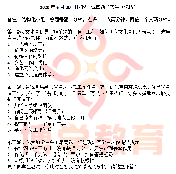 2020國考面試國稅崗位面試形式變動: