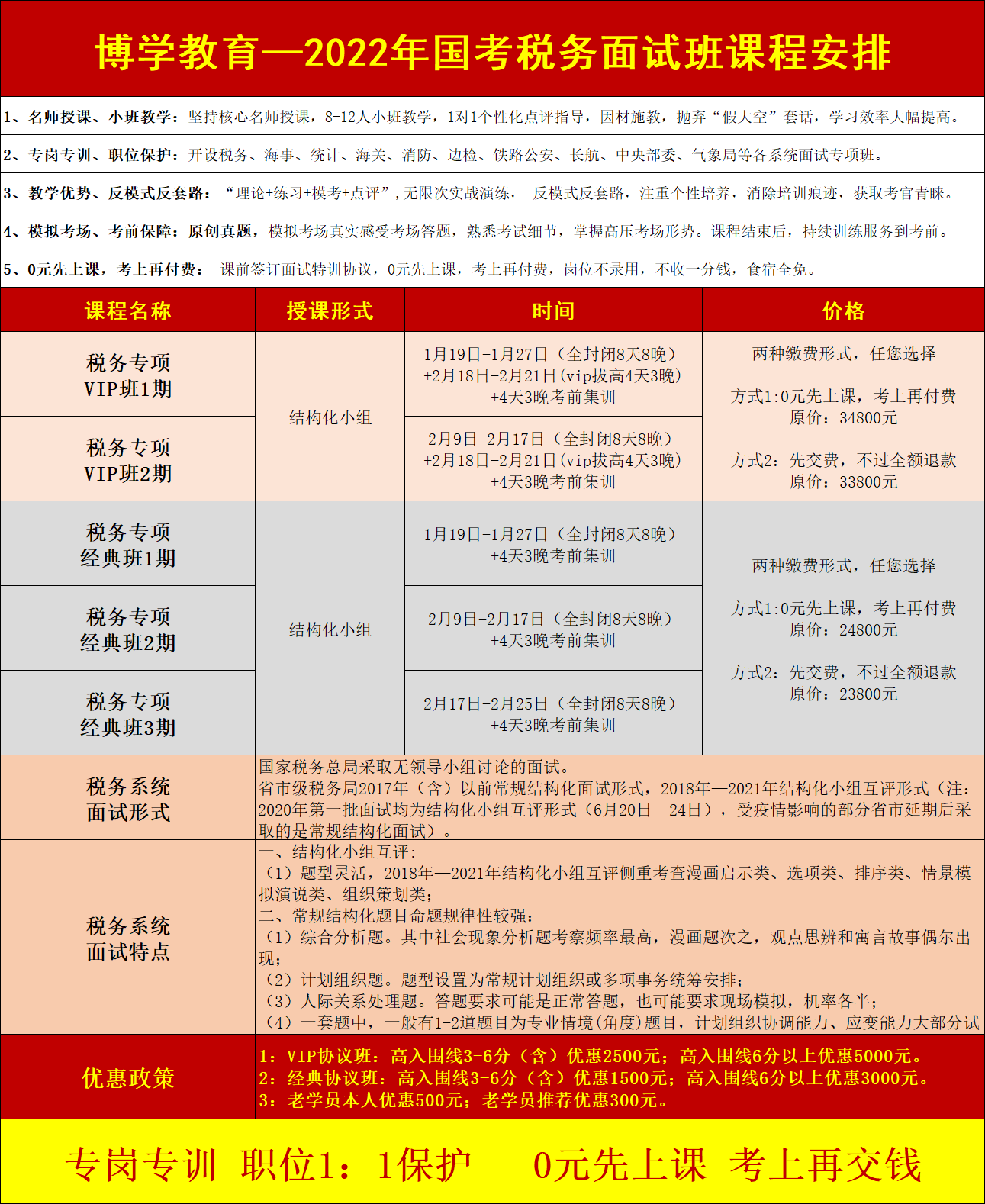 稅務(wù)局面試形式和特點(diǎn) 面試形式:國(guó)家稅務(wù)總局采取無(wú)領(lǐng)導(dǎo)小組討論的面試。 省市級(jí)稅務(wù)局2017年(含)以前常規(guī)結(jié)構(gòu)化面試形式,2018年—2021年結(jié)構(gòu)化小組互評(píng)形式(注:2020年第一批面試均為結(jié)構(gòu)化小組互評(píng)形式(6月20日—24日),受疫情影響的部分省市延期后采取的是常規(guī)結(jié)構(gòu)化面試)。 面試題量:結(jié)構(gòu)化小組互評(píng)每套題3道題目;常規(guī)結(jié)構(gòu)化面試每套題4道題目。 面試時(shí)間: (1)結(jié)構(gòu)化小組互評(píng):15分鐘場(chǎng)外備考看題,進(jìn)入考場(chǎng)后,按要求每人依次答題,每道題目3分鐘(注:個(gè)人答題時(shí)間:2020年—2021年均為3分鐘,2018年—2019年均為2分鐘);全部答題結(jié)束,按要求展開互評(píng),點(diǎn)評(píng)每人的時(shí)間為2分鐘;被點(diǎn)評(píng)人針對(duì)點(diǎn)評(píng)展開回應(yīng),時(shí)間2分鐘。 (2)常規(guī)結(jié)構(gòu)化面試:4道題目20分鐘,剩余3分鐘提醒時(shí)間。 (3)無(wú)領(lǐng)導(dǎo)討論:20分鐘場(chǎng)外備考看材料,然后進(jìn)入考場(chǎng)總時(shí)間85分鐘,首先個(gè)人陳述每人3分鐘,然后根據(jù)問(wèn)題展開自由討論,最后推選一個(gè)代表作5分鐘陳述總結(jié)。 考查方式:看題+聽題相結(jié)合的 面試試題特點(diǎn) 第一、結(jié)構(gòu)化小組互評(píng): (1)題型靈活,2018年—2021年結(jié)構(gòu)化小組互評(píng)側(cè)重考查漫畫啟示類、選項(xiàng)類、排序類、情景模擬演說(shuō)類、組織策劃類; 第二、常規(guī)結(jié)構(gòu)化題目命題規(guī)律性較強(qiáng): (1)綜合分析題。其中社會(huì)現(xiàn)象分析題考察頻率最高,漫畫題次之,觀點(diǎn)思辨和寓言故事偶爾出現(xiàn); (2)計(jì)劃組織題。題型設(shè)置為常規(guī)計(jì)劃組織或多項(xiàng)事務(wù)統(tǒng)籌安排; (3)人際關(guān)系處理題。答題要求可能是正常答題,也可能要求現(xiàn)場(chǎng)模擬,機(jī)率各半; (4)一套題中,一般有1-2道題目為專業(yè)情境(角度)題目,計(jì)劃組織協(xié)調(diào)能力、應(yīng)變能力大部分試題為國(guó)稅專業(yè)情境題,綜合分析有少量的國(guó)稅專業(yè)角度題目,總體難度不大。