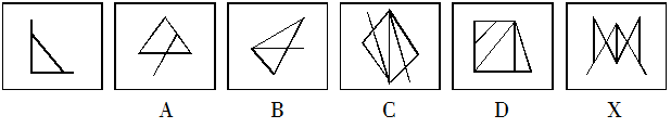 1.A、B、C、D中哪個與X圖形互換位置后,新的六個圖形序列能形成一定的規(guī)律?