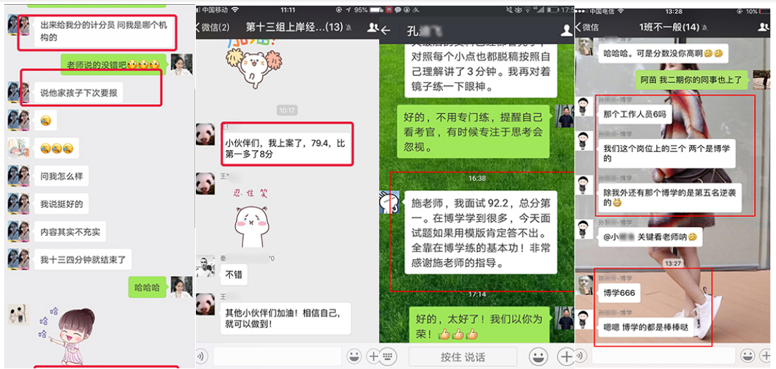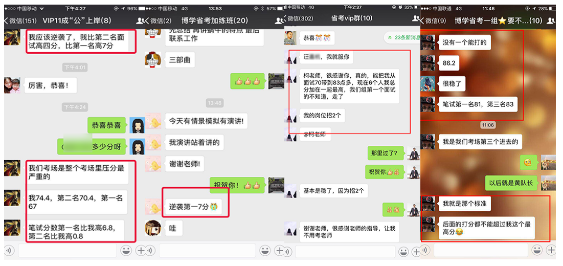 在2010年—2018年國考中,很多人僅僅是因為看了網(wǎng)上博學教育公務(wù)員班的幾段視頻,就毫不猶豫地選擇博學教育,最終成功地實現(xiàn)了他們的公務(wù)員之夢。2010年安徽省考高陽同學面試取得88.4的高分,一舉從筆試第23名躍居為綜合排名第一名,成為巢湖市面試狀元;胡卓然同學以86分的成績勇奪南京市第一名,被南京市國土資源局錄取。廣東的鄭滋潤同學,數(shù)次公考面試失敗,2011年慕名來到博學施老師門下,經(jīng)過七天學習,脫胎換骨,以91分的成績遙遙領(lǐng)先對手被財政部駐深圳市專員辦錄??!2011年安徽省考季毓同學面試取得88的高分,成為馬鞍市面試狀元;2012年上海的潘安安同學,以88.3的高分被上海海關(guān)隸屬海關(guān)通關(guān)業(yè)務(wù)部門錄取。2013年福建的王子熙同學,以89.4的高分被廈門海關(guān)廈門地區(qū)隸屬海關(guān)或辦事處錄取。2013年安徽省考牛園園同學取得面試86.8分,成為亳州市面試狀元!2014年安徽的曹珍同學,以86.8的成績勇奪安徽省直面試狀元,被安徽省女子監(jiān)獄錄取。2015年國考安徽的曹燦同學,以92.25分的成績被中國銀行業(yè)監(jiān)督管理委員會安徽監(jiān)管局錄??!2015年安徽省考陳雯同學以面試87.2的高分勇奪蕪湖市面試狀元;趙錦同學以面試86.4的高分取得天長市面試狀元;查菁文同學以面試86的高分取得定遠縣面試狀元。2016年國考面試,張雨豪以91分的成績被甘肅省國家稅務(wù)局錄取。2016年安徽省考陳蓉同學以面試86.8分取得馬鞍山市非鄉(xiāng)鎮(zhèn)公務(wù)員面試狀元;2017年國考,劉大偉勇奪山東省面試狀元,以98.67分被商務(wù)部錄取;阮帆同學面試取得91.33分,上海市國稅錄取;鄭想同學面試取得90.3分,上海國稅錄;2017年安徽省考顧博賢同學以面試88分取得利辛縣非鄉(xiāng)鎮(zhèn)公務(wù)員面試狀元。2018年國考徐起以87.33分被中央國家機關(guān)工委錄取,夏鈺以88.33分被中國浦東干部學院錄取。2018年安徽省考,周陽以83.8分取得銅陵市鄉(xiāng)鎮(zhèn)層級面試狀元;魏宇以82.8分取得亳州市鄉(xiāng)鎮(zhèn)層級面試狀元!